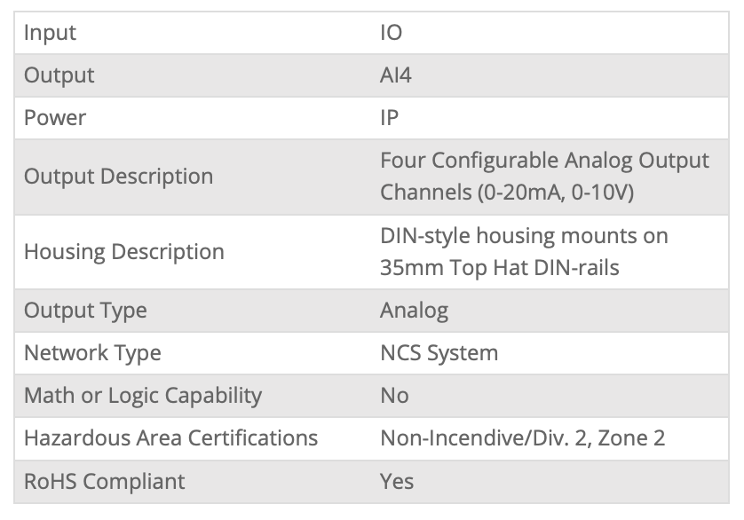 Universal Analog Output Module for NCS. This module is part of the NCS Net Concentrator System. Other NCS modules include: AIM, CPM, DIM, EMM, ROM, TIM.