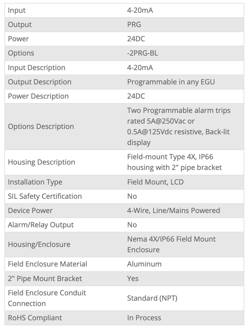 The universal SPD Programmable Loop Display accepts a 4-20mA input from a process transmitter or similar analog device and indicates real-time process status in mA, percent or any designated engineering unit (EGU) on its 5-digit display.