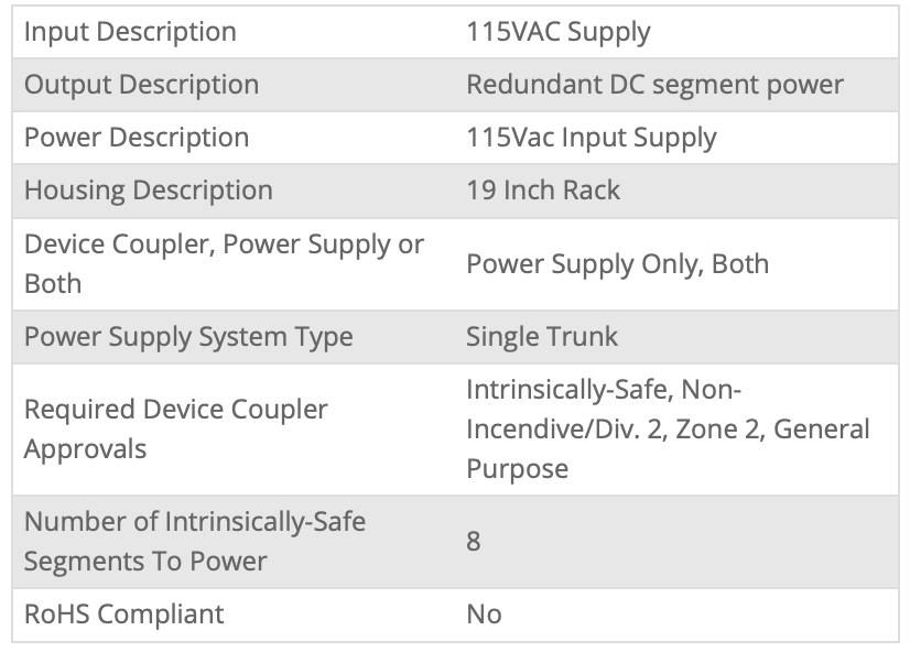 The 19-inch rack mount RM100 fieldbus power Supply/Conditioner includes integral surge protection and provides redundant, galvanically-isolated and conditioned DC power for up to eight fieldbus segments.