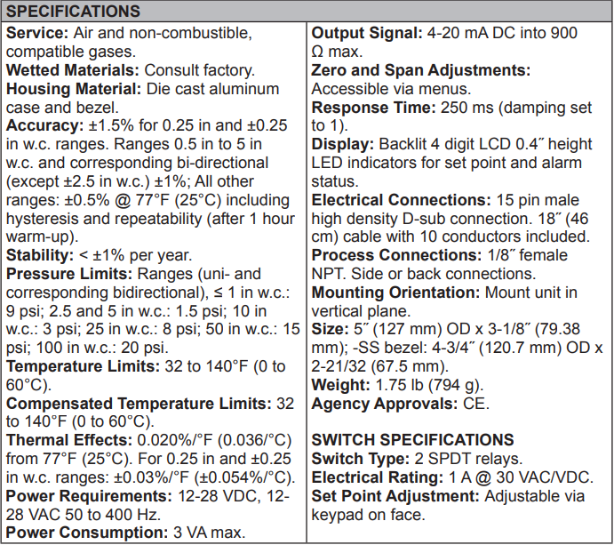 Series DH3Digihelic® Differential Pressure Controller. Digihelic® Controller in Photohelic® Gage, Square Root Output for Flow