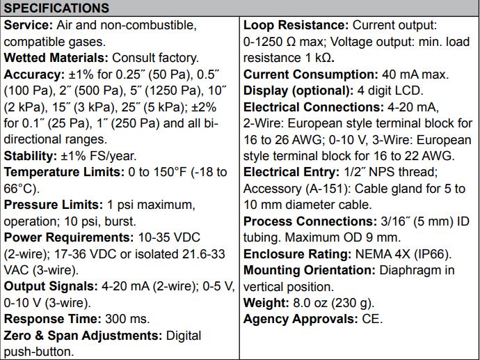 Series MS Magnesense® Differential Pressure TransmitterMonitors Pressure & Air Velocity