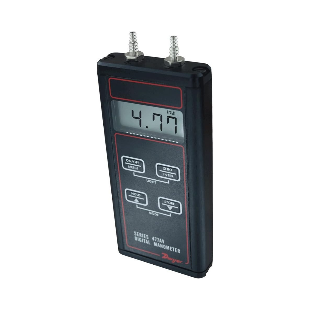 美國 Dwyer 477AV 手持式數位壓力/風速計,專為 HVAC 系統測試打造。提供 0-20" w.c. 微差壓量程與 ±0.5% 高精度。內建壓力、風速與風量計算模式,搭配皮托管即可精準測量風管氣流。極堅固的鋁合金外殼防護,是現場工程師的完美檢測利器。【貝鑫科技-Dwyer唯一指定台灣總代理 提供專業選型與現貨供應】